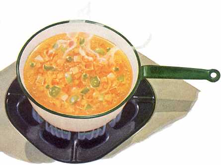 Combine all ingredients in large saucepan. Simmer, uncovered 60 minutes. Quicker version: Sauté onions and garlic and skillet until tender then add to soup. READY TO EAT IN ONE HOUR......