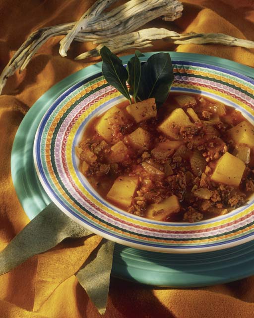 Heat oil in pan and add chopped onions and garlic. Sauté for a couple of minutes, add potatoes. Season potatoes to taste with salt, garlic salt & onion power. Cook on med. heat for about 10 min. (until potatoes are tender) Add Corn beef, and cook for another couple of minutes. Add green chile and stewed tomatoes. Add enough water to make soupy texture. Season again if needed, and boil on med-low for about 25-30 minutes so all the flavors mix. The longer you boil the better it tastes. Just make sure it always has plenty of water.